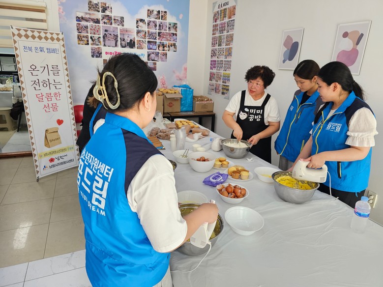 이날 청소년들은 미미공방 카페의 베이커리 지도를 바탕으로 파운드케이크·머핀·찹쌀 파이로 구성된 ‘달콤 세트’ 100개를 정성껏 제작했다.