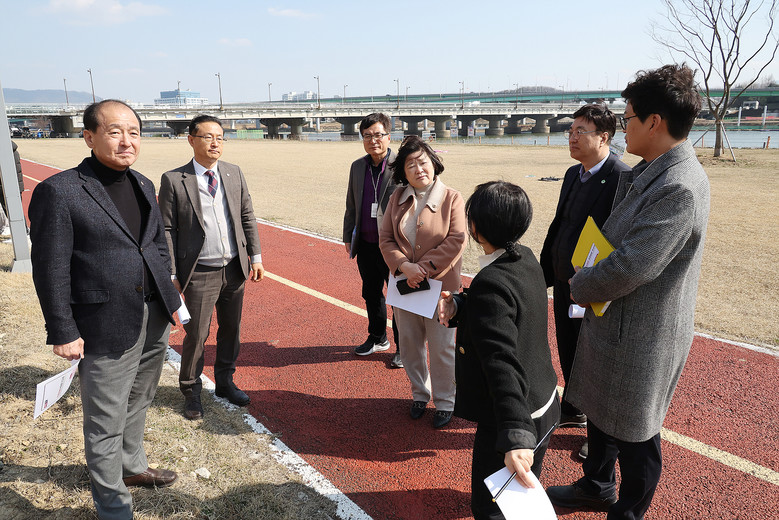 먼저 하천관리사업소를 방문하여 시설을 둘러보고, 주요 사업에 대한 그동안의 추진실적 및 향후 계획에 대해 업무보고를 청취하였다. 위원들은 계절별 꽃단지 조성에 만전을 기해줄 것을 요청하고 하천 노후 화장실 교체에 대해 설명을 들으며 시민이 안전하고 편안하게 사용할 수 있게 만들어 주기를 당부했다.