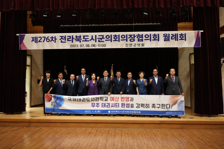 전라북도시군의회의장협의회는 채택한 건의문을 통해 ▲정부와 문화체육관광부가 국제태권도사관학교 기본계획 예산 10억원을 2024년 정부예산안에 즉각 반영할 것 ▲문화체육관광부가 태권도법의 취지를 살려 무주군의 태권도 성지를 완성하도록 행정ㆍ재정적 지원을 적극 추진할 것 ▲세계태권도연맹과 국기원이 무주군으로 본부를 이전하도록 재추진할 것을 한 목소리로 요구했다.