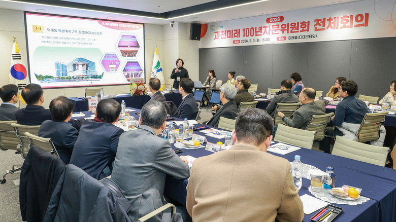 [세계타임즈=과천시 송민수 기자] 과천시는 지난 3일 지식정보타운 디테크타워 미래홀에서 ‘과천 미래 100년 자문위원회’ 전체회의를 열고, 2026년 시정 운영 방향과 주요 현안에 대해 설명하고 의견을 나눴다. 이날 회의에는 60여 명의 자문위원이 참석했다.