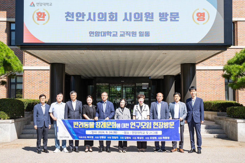 [천안시 세계타임즈=백택기 기자] 천안시의회 '반려동물 장례문화에 대한 연구모임'(대표의원 복아영)은 2024년 9월 24일 연암대학교와 민간 반려동물 장례식장인 21그램을 방문하여 반려동물 장례문화와 관련된 현황을 점검하고, 천안시 반려동물 정책 발전을 위한 아이디어를 모색했다.