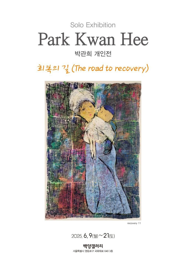 오는 6월 10일부터 21일까지, 영등포시장역 인근 백양갤러리에서 박관희 작가의 개인전 **‘회복의 길’**이 열린다. 이번 전시는 동명의 시(詩)인 회복의 길을 중심으로, 삶의 상처와 회복, 그리고 어머니의 사랑이라는 주제를 다양한 작품에 녹여낸 자리로 관람객들에게 잔잔한 감동과 위로를 전하고 있다.