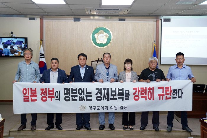 이러한 사태에 대해 양구군의회 의원들은 양구군민과 뜻을 모아 일본 정부의 부당한 조치를 바로 잡도록 강력히 촉구하는 등