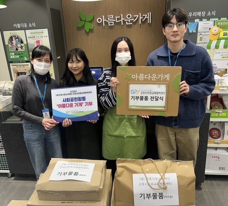| ▲군포시진로교육협력센터 사회공헌활동 '아름다운 가게 기부 캠페인' 진행.(사진=군포시청소년재단) |