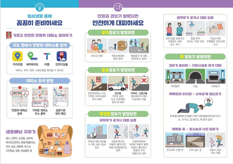 시 관계자는 “고도화되는 북한의 도발과 불안정한 국제정세 속에서 평화를 지키기 위해서는 사전 대비가 필수”라며 “이번 훈련을 통해 국민 행동요령과 생존배낭 준비 등 비상대응 역량을 강화해 달라”고 당부했다.