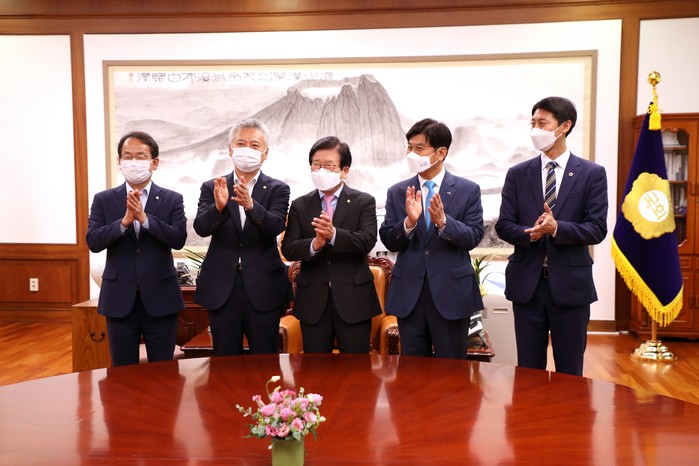 [세종=세계타임즈 이채봉 기자] 세종특별자치시의회 이태환 의장은 24일 국회를 방문해 박병석 국회의장과 윤호중 국회운영위원장과 대화를 나누고 국회 세종의사당 설치를 위한 국회법 개정안 처리 의지를 재확인했다.