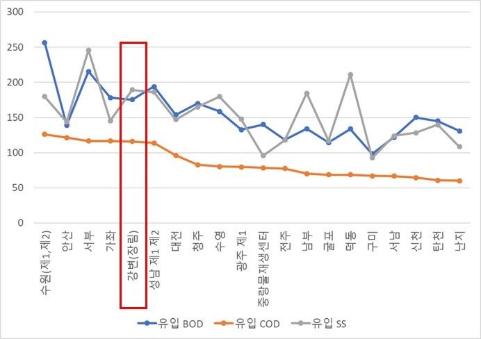 그러면서 이 의원은 전국에 위치한 크고 작은 하수처리장 4.281개소 가운데 21번째로 오래된 시설이면서도 반입하수량은 11번째로 높아 중요도가 높다고 지적하면서, “특히, 대규모 사업장 중에서도 BOD나 COD 같은 유입물질 농도가 상대적으로 높은 곳이어서 그만큼 중요한 시설이고 관리를 잘해야 하는 곳”이라고 지적했다.
