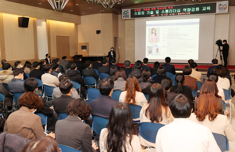 [충북 세계타임즈=이현진 기자] 충북도의회는 16일 도청 대회의실에서 도의원 20여명과 도의회‧도청 직원 100여명을 대상으로 스피치 기술과 소통리더십에 대한 특강을 실시했다.
