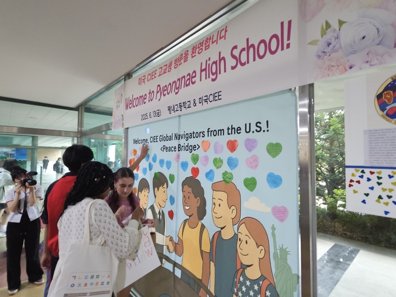 [남양주시 세계타임즈=송민수 기자] 평내고등학교는 2025 유엔 참전국 글로벌 아카데미 사업 및 유네스코학교 운영의 일환으로 미국 국제교육교류협의회(CIEE)에서 선발한 고등학생 57명과 관계자 10여명 등 총 67여 명을 초청해 국제문화교류 행사를 6월 13일에 진행했다. 오는 7월 11일에도 동일한 규모의 방문단이 추가로 방문할 예정이다.