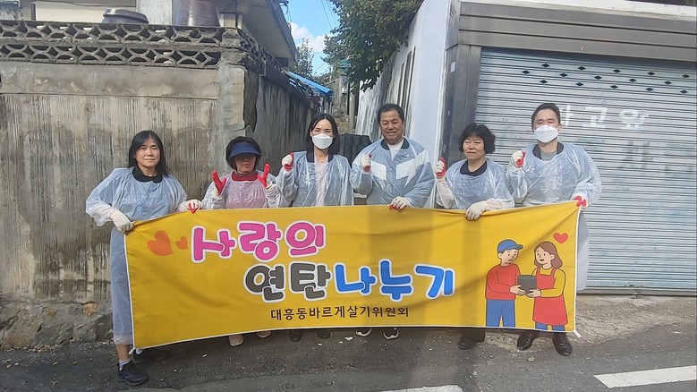 [중구 세계타임즈=이채봉 기자] 대전 중구 대흥동(동장 민순희)은 23일 대흥동 바르게살기위원회(위원장 최재량)와 함께 ‘사랑의 연탄 후원 및 나눔 봉사’활동을 실시했다고 밝혔다.