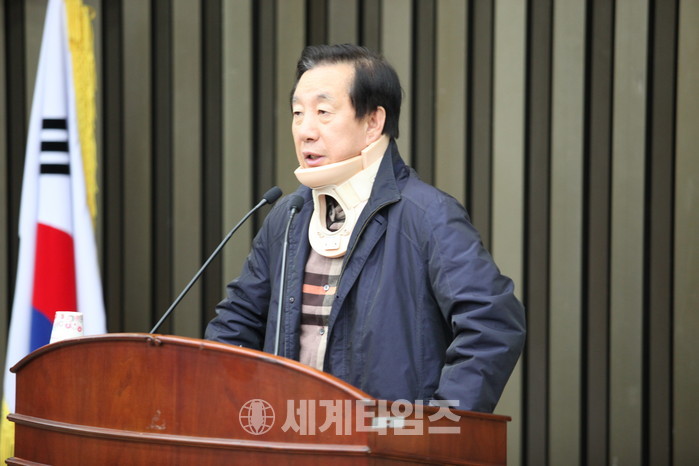 오늘 우리 김성태 원내대표가 사실 저와 상의도 없이 혼자 결정으로 노숙투쟁을 하는 것을 보고, 내가 참 말렸는데 본인이 이제 이 방법밖에 없다. 정권이 하도 후한무치 하니 더 이상 우리가 방법이 없다. 그래서 시작한 것을 보고 안타깝기도 하는데 오늘도 병원에 들러서 ‘입원을 좀 하는 게 어떠냐’ 했더니 ‘계속 하겠다. 받아줄 때까지 하겠다’고 하는데, 오늘 보니까 침도 안 넘어가고 목의 경추 쪽에도 상당히 문제가 있는 것 같다. 그래서 의원님 여러분들이 우리 원내대표가 자기 몸을 내던져서 투쟁하고 있기 때문에 모두 한마음으로 지원했으면 좋겠다. 휴일에 늦게 와주셔서 정말 감사드린다.