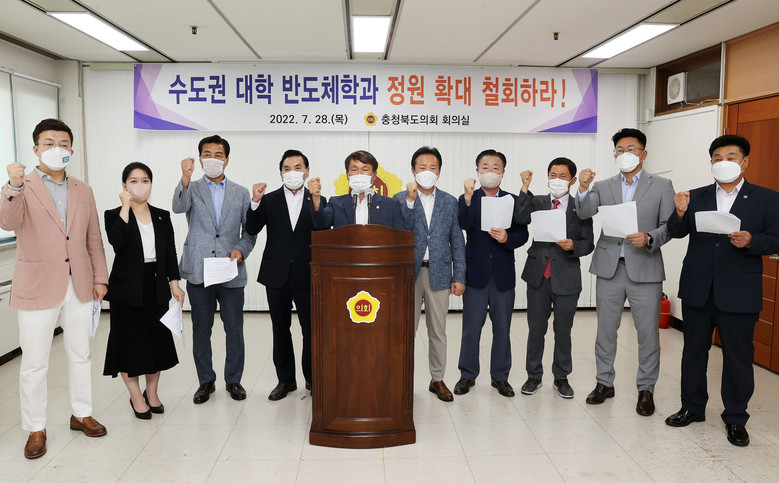 [충북 세계타임즈=이현진 기자] 충북도의회(의장 황영호)는 7월 28일 의회 회의실에서 수도권 대학의 반도체학과 정원 확대를 반대하는 성명서를 냈다.