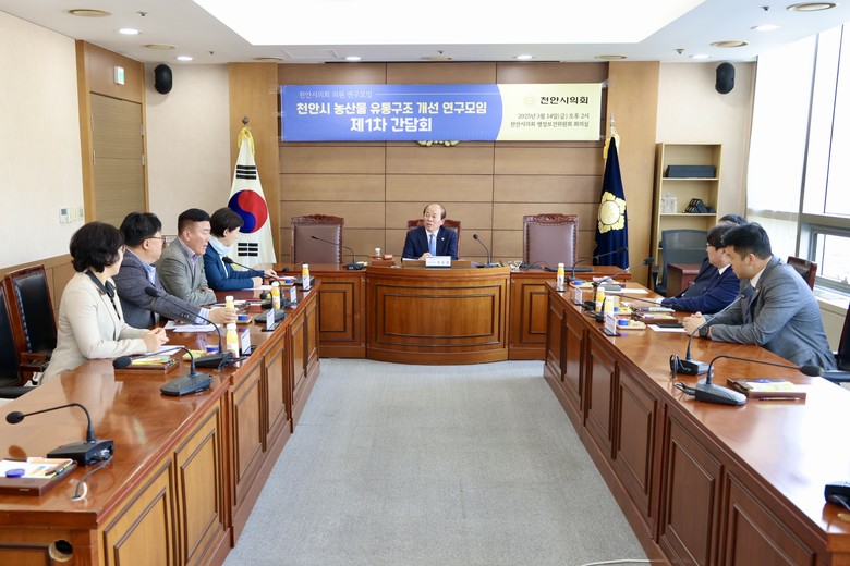[천안시 세계타임즈=이현진 기자] 천안시의회(의장 김행금)는 의원 연구모임인 <천안시 농산물 유통구조 개선 연구모임>(대표의원 육종영)이 3월 14일 제1차 간담회를 열고 연구모임의 활동 방향 및 운영 계획을 확정했다고 밝혔다.