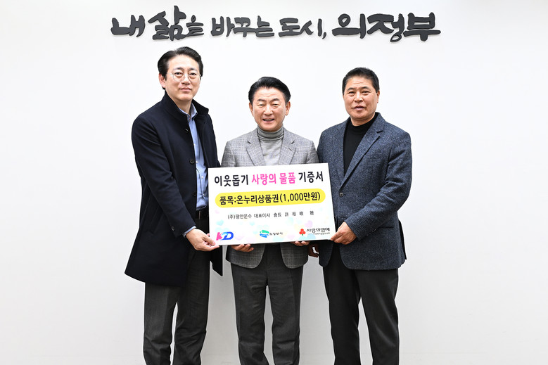 시장실에서 진행된 전달식에는 KD운송그룹 우정식 이사와 ㈜평안운수 송진화 노동조합 위원장을 비롯한 관계자들이 참석해 나눔의 뜻을 함께했다. 이들은 온누리상품권 1만 원권 1천 매를 시에 전달했다.