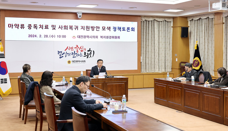 [대전 세계타임즈=이채봉 기자] 대전시의회 복지환경위원회는 민경배 의원(국민의힘, 중구3) 주재로 28일 10시 대전시의회 소통실에서 ‘마약류 중독 치료 및 사회복귀 지원 방안 모색 정책토론회’를 개최했다.