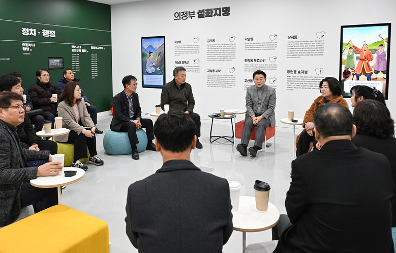 티타임에 앞서 참석자들은 정보도서관 내부를 함께 둘러보며 리모델링 이후 변화된 공간을 확인했다. 이후 진행된 회의에서는 호원권역 내 주요 현안과 태조 어진 고유제‧봉안식 추진 상황 등 다양한 지역사업에 대한 설명과 의견 교환이 이뤄졌다.