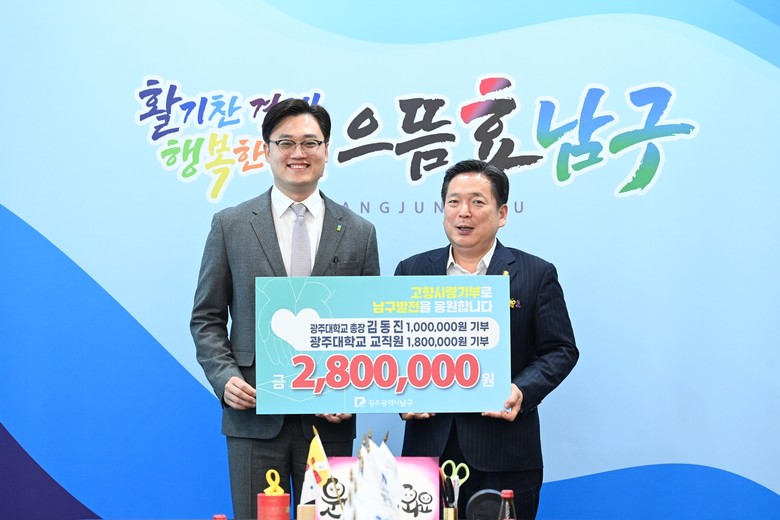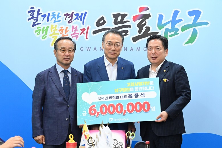 [세계타임즈=남구 손권일 기자] 광주시 남구는 8일 구청 열린민원실에서 남구 발전을 위한 고향사랑기부금 전달식을 가졌다.