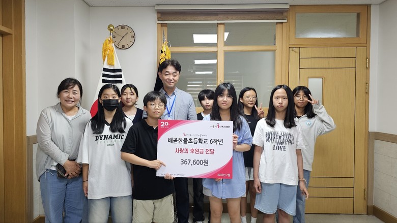 ◦ 2025년 7월 21일(월) 배곧한울초 6학년, 수익금 기부 전달식 실시