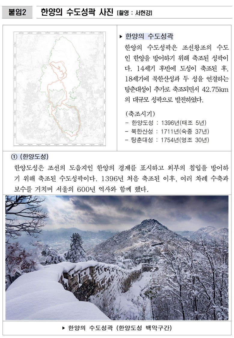 - ‘한양의 수도성곽’, 단일유적 아닌 광역적이고 유기적인 방어 시스템