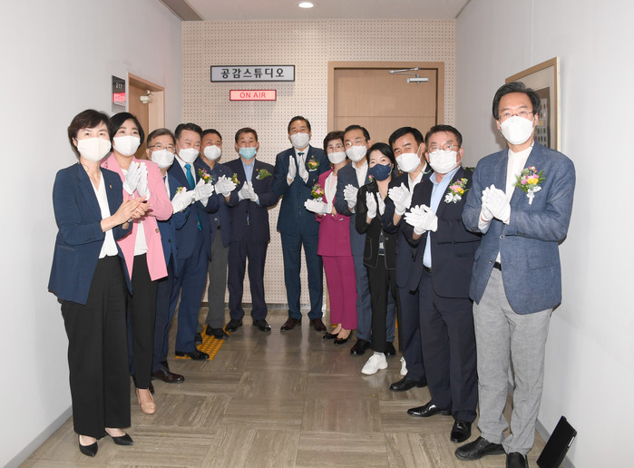 ‘공감스튜디오’는 김용집 의장이 지난해 7월 취임 후 시의원들의 의정활동 지원을 위해 제안한 것으로, 시의회 2층 유휴공간을 리모델링하여 약 43평방미터 규모로 구축되었다. 스튜디오·편집실·자재실로 구성되어 있고, 스튜디오에는 최대 3명까지 출연할 수 있는 촬영세트와 크로마키 스크린, 방음시설 등을 갖추고 있다.
