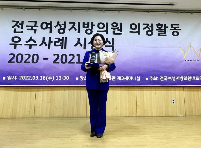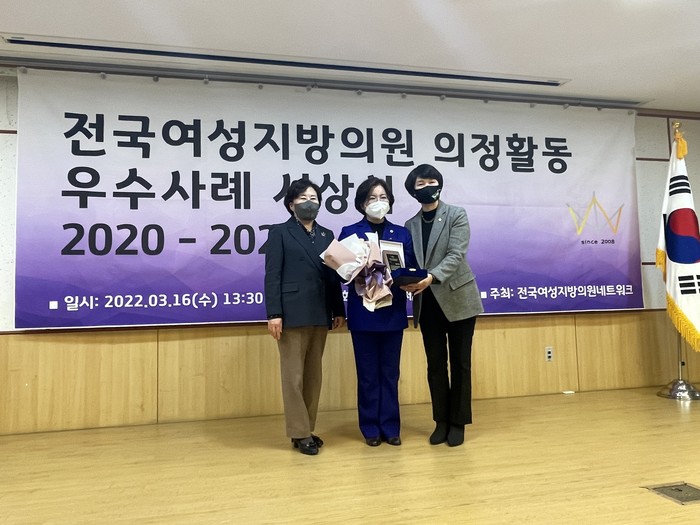 [광주=세계타임즈 손권일 기자] 광주광역시의회 박미정(더불어민주당, 동구2) 의원이 16일 국회의사당 내 국회의원회관에서 진행된 ‘전국여성지방의원네트워크(공동대표 이영숙 도봉구의원, 홍진옥 충주시의원, 설혜영 용산구의원, 이하 전여네)’ 의정활동 우수사례 시상식에서 우수상을 수상하였다.