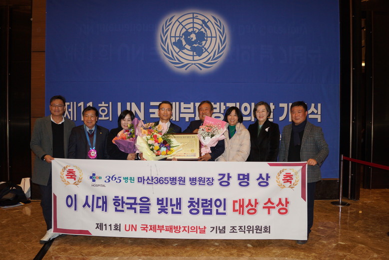 [세계타임즈]최성룡기자 = 강명상 마산365병원장이 지난 26일 제11회 UN국제부패방지의 날 기념식 행사에서 “이시대 한국을 빛낸 청렴인 대상”을 수상했다.
