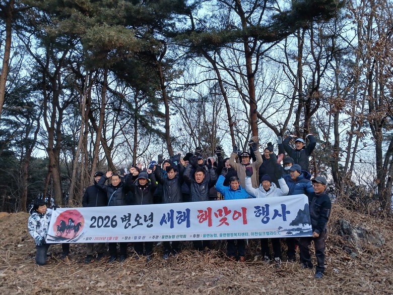 [이천시 세계타임즈=송민수 기자] 이천시 율면(면장 백춘승)은 율면농협산악회가 2026년 1월 1일, 임오산 정상에서 지역 주민과 함께하는 새해 해맞이 행사를 개최했다고 밝혔다.