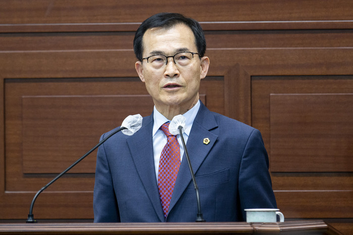 이철우 도지사에게 대구경북행정통합의 계속 추진여부와 함께, 통합 청사 소재지 및 통합 자치단체 명칭을 어떻게 할 것인가에 대해 질문했다.