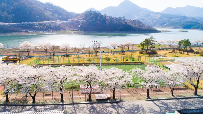 벚꽃을 구경하기 좋은 코스는 단양읍 소금정공원~상진대교 구간과 고수동굴 인근도로, 단성면 강변산책로이다.