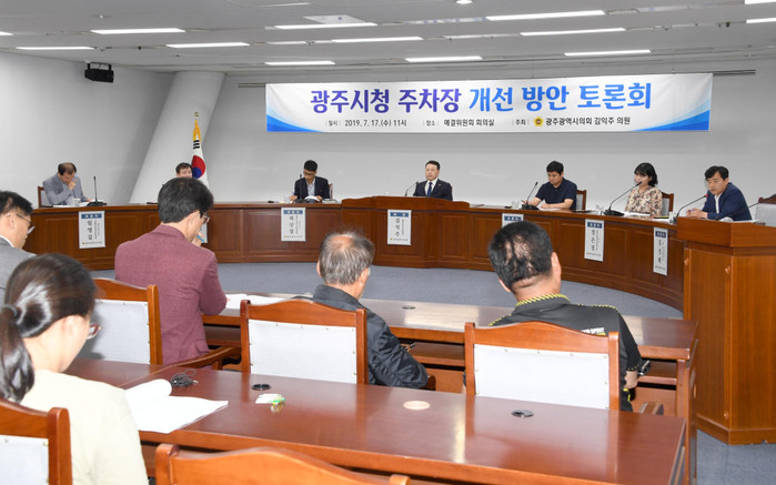 광주시의회 김익주 의원(광산1)이 17일 주최한 ‘광주시청 주차장 개선 토론회’에서 토론자와 방청석 참여자들은 광주시청 주차장을 이용하는데 너무 불편하다며, 유료화로 전환해서 시청을 찾는 민원인들의 편의를 제공해야 한다고 입을 모았다.