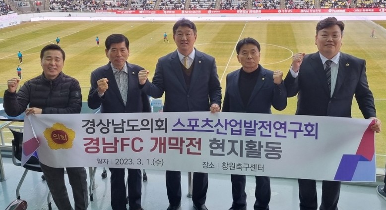 [경남 세계타임즈=최성룡 기자] 경상남도의회 의원 연구단체 ‘스포츠산업발전연구회’(회장 김태규 의원)는 3월 1일 창원축구센터에서 열린 「2023년 경남FC 홈경기 개막전」을 찾았다.