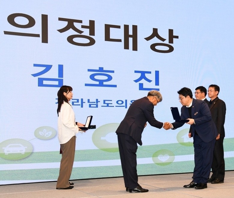 [전남 세계타임즈=우덕현 기자] 전라남도의회 김호진 의원(더불어민주당·나주1)이 최근 사단법인 탄소중립실천연대 한국본부로부터 ‘2050탄소중립 의정대상’을 수여받았다.