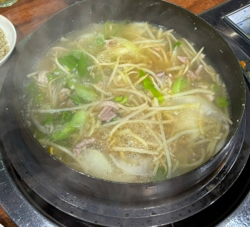 특히 산수정 오리불고기에는 타 업소와 비교가 되는 것은 숙주와 팽이버섯. 추가로 들어간다 여기에 부추까지 그래서 고기 식감이 한층 더 좋고 맛깔스럽다. 오리불고기는 주방에서 요리사의 손으로 다 볶아서 나오기 때문에 뜨거운 불에 굽는 번거로움이 없이 곧바로 시식하면 되는 점이 특이하다.