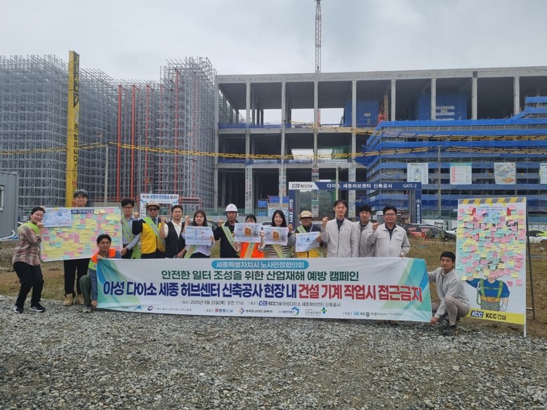 [세종 세계타임즈=이채봉 기자] 세종특별자치시(시장 최민호)가 25일 아성다이소 세종허브센터 건설현장에서 세종시노사민정협의회와 함께 산업재해 예방 캠페인을 진행했다고 밝혔다.