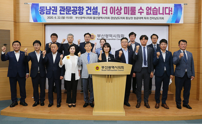 [부산=세계타임즈 장경환 기자] 부산시의회, 울산시의회, 경남도의회(동남권 항공대책 특위), 전남도의회(이하 “시도의회”라 한다.)는 22일 오후, 부산시의회 브리핑룸에서 ‘국무총리실 검증위원회의 김해신공항 적정성 검증에 대한 조속한 결정과 동남권 관문공항 건설을 촉구’하는 호소문을 발표했다.