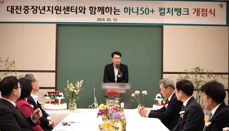 [대전 세계타임즈=이채봉 기자] 대전시의회 이상래 의장은 15일 대흥동 소재 하나은행 대전지점에서 개최된 ‘대전 중장년 컬처뱅크 개점식’에 참석해 관계자들과 인사를 나누고 중장년을 위한 새로운 공간 마련에 감사의 마음을 전했다.