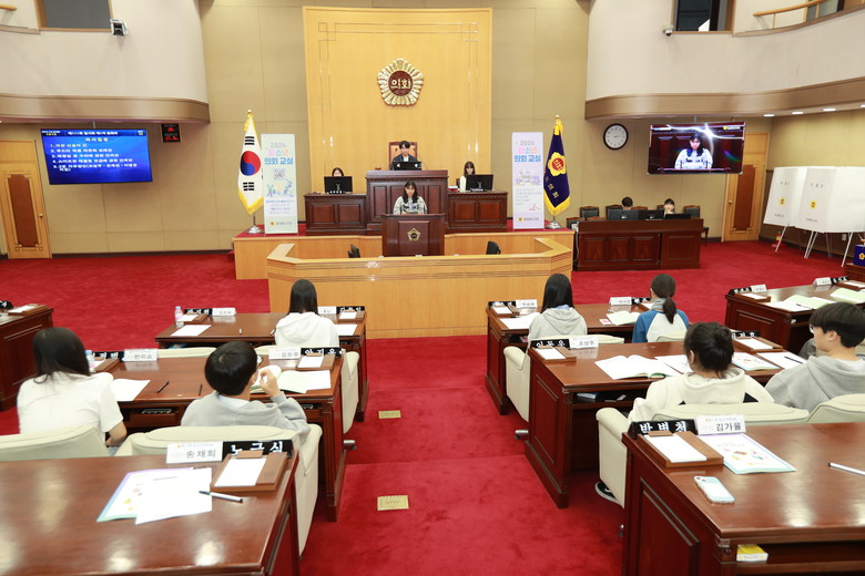 청소년 의회교실은 학생들이 1일 도의원이 되어 본회의장에서 의장 선거, 안건처리, 2분 자유발언 등 의정활동을 체험하는 프로그램이다.