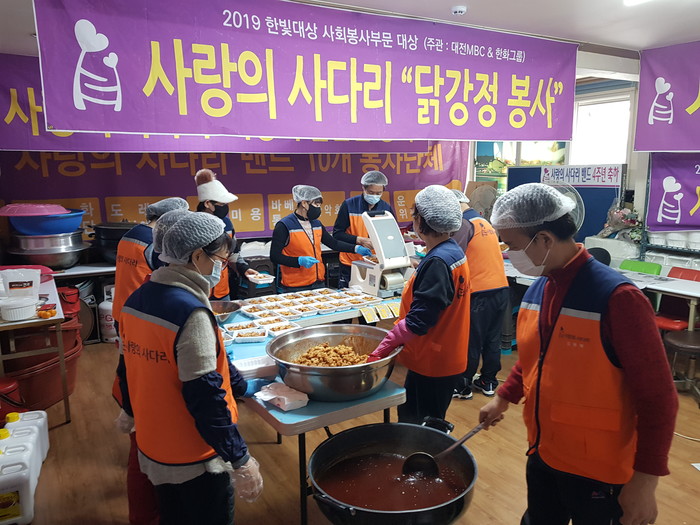 [대전=세계타임즈 편집국] 대전광역시 SNS 일만명 봉사단체 사랑의 사다리 밴드(리더 이정제)는 10일 오전9시~오후12시, 대덕구 중리동에 위치한 사랑의 사다리 밴드사무실에서 닭강정 120개를 만들어서 동구장애인주간보호센터에 전달하면서 우리 사회의 따뜻한 사랑을 실천하였다.