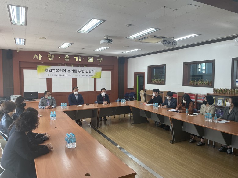 [경남 세계타임즈=최성룡 기자] 경상남도의회 교육위원회 조영명 의원(국민의힘, 창원13)은 26일 마산 팔룡교육단지에 소재한 양덕중학교에서 마산 지역 교육 현안을 논의하기 위한 간담회를 개최하였다.