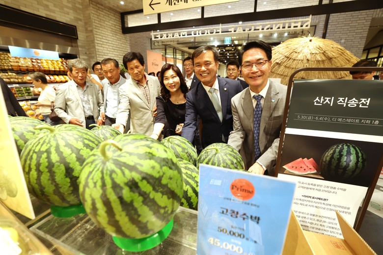 2일 고창군에 따르면 지난달 31일 대한민국 유통가의 1번지로 일컬어지는 ‘신세계백화점 본점(서울시 중구 소곡로31)’ 광장에서 고창수박 대규모 판촉행사를 열었다.