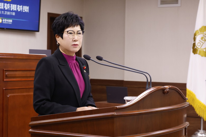 [순천시 세계타임즈=우덕현 기자] 순천시의회 서선란 의원(더불어민주당, 향·매곡·삼산·저전·중앙)이 27일 제283회 제2차 정례회 제2차 본회의에서 의원 자유발언을 통해 순천지역자활센터의 열악한 환경 개선을 요구했다.