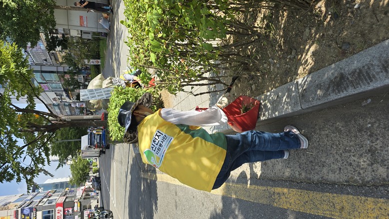 지난달 31일 발산역 인근 상가에서 ‘자연아 푸르자’ 행사로 월남 참전 용사들과 함께 주변 쓰레기를 수거하는 탄소 중립 캠페인이 진행됐다.