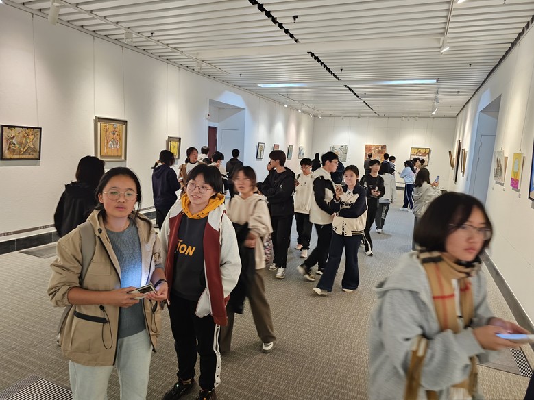 | ▲위해 시립미술관에서 개최돤 한중미술협회전시에 관심을 갖는 중국 관람객들 |