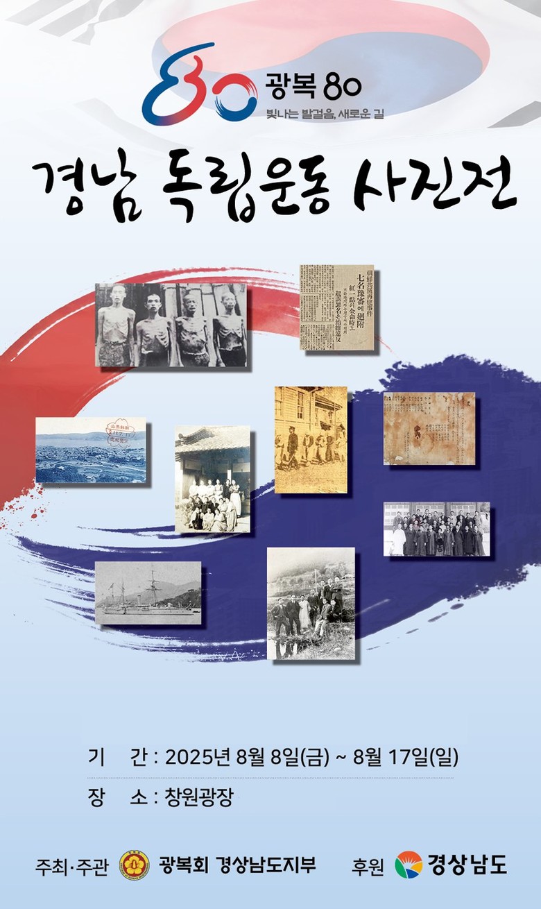 - 독립운동관련 사진 600여 점·체험행사로 광복 80주년의 의미 되새겨 [세계타임즈=경남 최성룡 기자] 경상남도(도지사 박완수)는 오는 8월 8일부터 17일까지 창원광장에서 광복 80주년을 맞아 도내 독립운동가들의 항일 정신을 기리고자「경남 독립운동가 사진전시회」를 개최한다고 밝혔다.