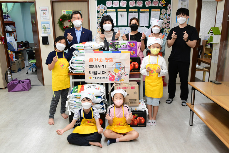 [광주 세계타임즈=손권일 기자] 광주광역시의회 조석호 환경복지위원장은 7일 오후 추석 명절을 맞아 북구 매곡로에 위치한 매곡지역아동센터를 방문해 위문품을 전달하고 관계자를 격려했다.