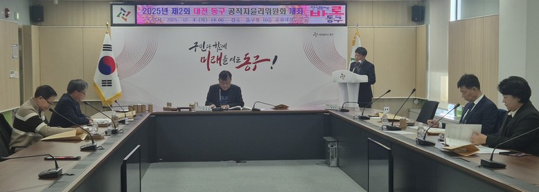 [동구 세계타임즈=이채봉 기자] 대전 동구(구청장 박희조)는 4일 구청 중회의실에서 ‘2025년 제2회 공직자윤리위원회’를 개최하고, 공직자 재산등록 사항에 대한 심사를 실시했다고 밝혔다.