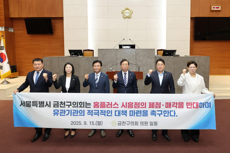 이에 의회는 촉구결의문을 통해 ▲홈플러스 시흥점의 일방적인 폐점·매각 추진 강력 반대 ▲MBK파트너스는 폐점·매각 계획을 모든 당사자와 사전 협의하고, 지역경제·고용 대책을 포함한 관련 정보를 명확히 공개할 것 ▲MBK파트너스는 자구노력을 통해 홈플러스 경영 정상화를 이행하고, 근로자·소상공인·유통업자의 생존권을 보호하며 상생을 위한 사회적 책임을 다할 것 ▲금천구청은 폐점·매각이 지역사회에 미칠 영향을 철저히 검토하고, 고용안정·입점업체 보호를 포함한 즉각적 대응책과 제도 개선을 추진할 것 ▲모든 유관기관은 금천구민의 폐점·매각 반대 열망을 존중하고, 선제적·적극적 논의와 공동 대응에 나설 것을 촉구했다.