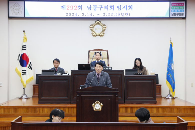 [남동구 세계타임즈=심하린 기자] 인천 남동구의회 전용호 의원(구월2동, 간석2동, 간석3동)이 제292회 임시회 제2차 본회의에서 “구민만 바라보고, 구민을 위하여 함께 갑시다”라는 주제로 5분 자유발언을 펼쳤다.