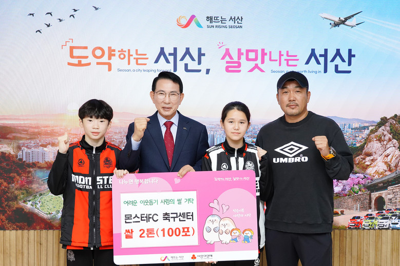 이날 몬스터FC 축구센터는 600만 원 상당의 쌀 2톤(100포, 1포당 20㎏), 한국방송통신대학교 서산태안학생회는 어려운 이웃돕기 성금 100만 원을 서산시에 전달했다.