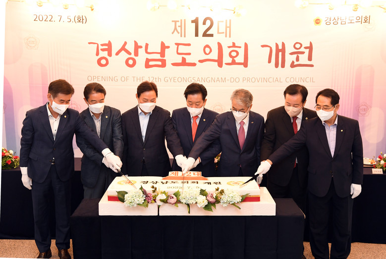 개원식을 마치고 1층 로비에서 김진부 의장을 비롯한 제12대 도의원과 박완수 도지사, 박종훈 교육감, 조우성 의정회장 등이 참석한 가운데 개원 축하연을 개최하였다.